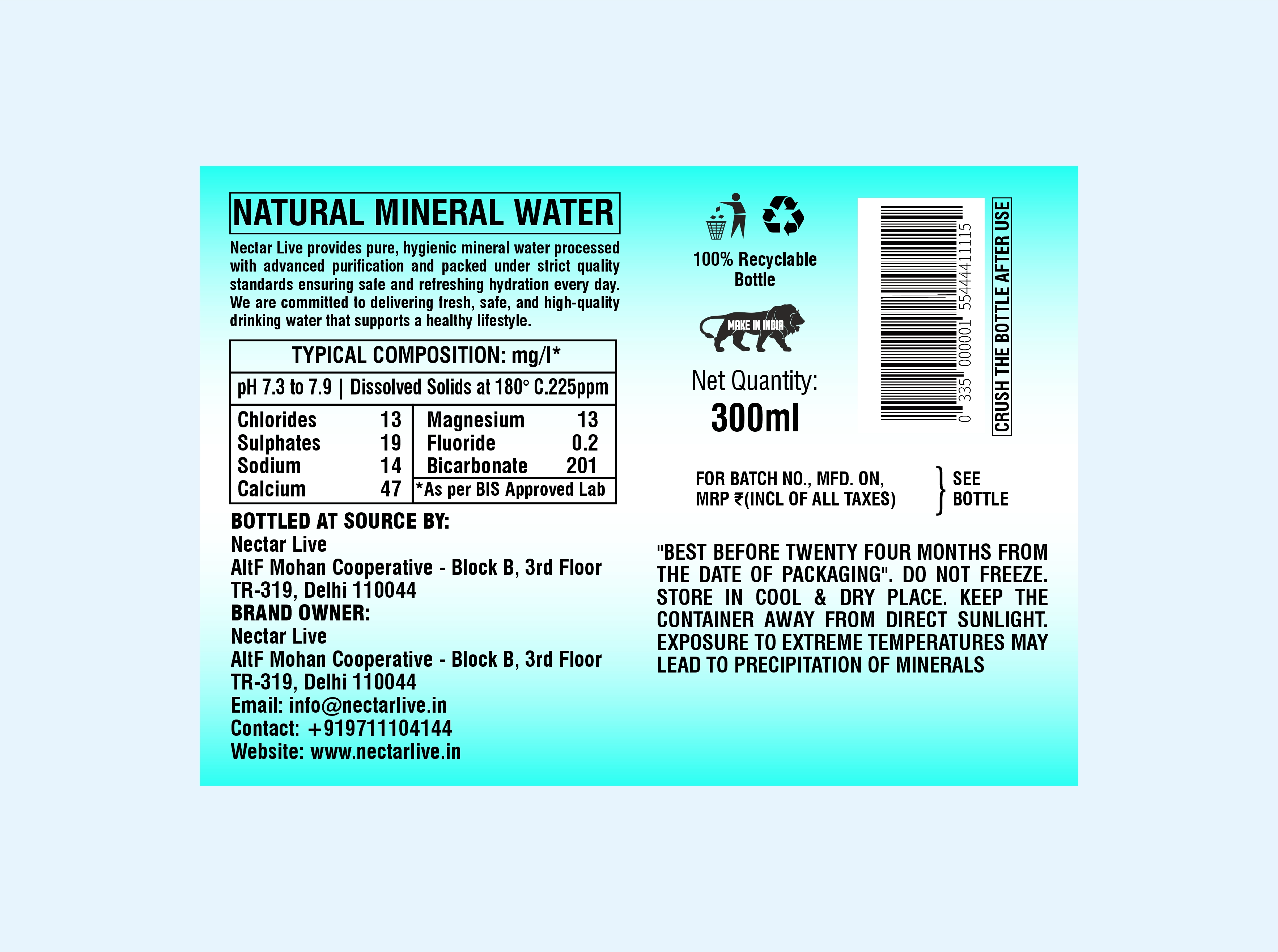 Nectar Live 300 ml Mineral Water Bottle